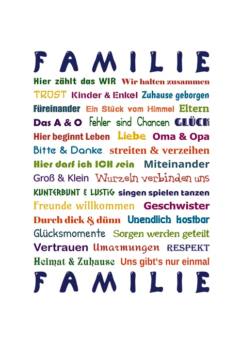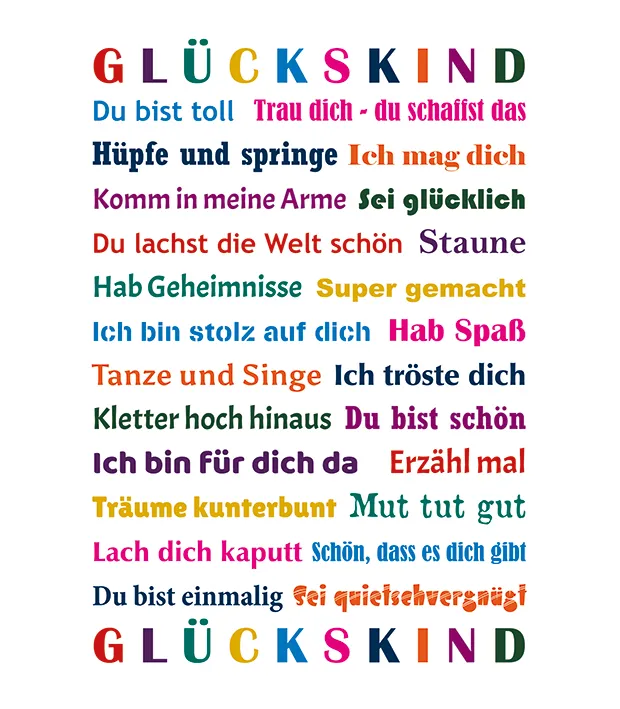 Einzigartige Designs aus Worten, Farben und Schriften zu den unterschiedlichsten Themen